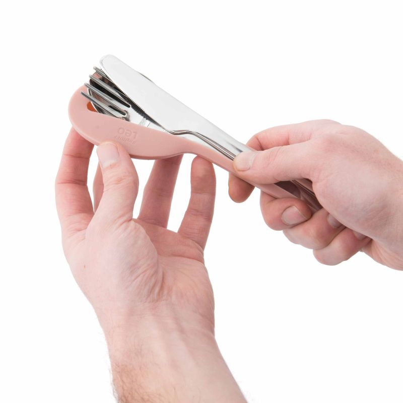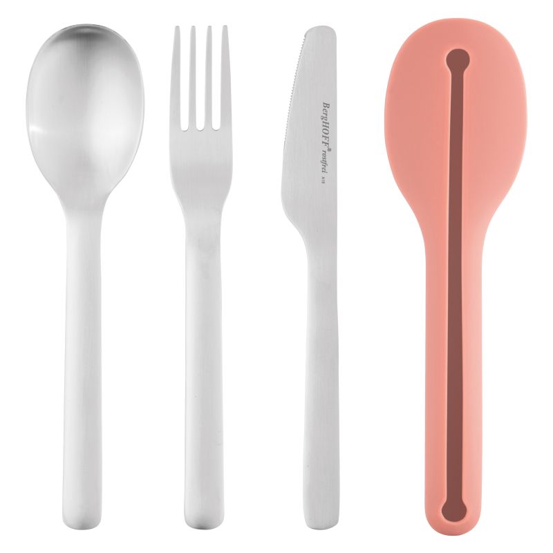 С този компактен комплект прибори за храна от 3 части, винаги ще сте готови за закуска или обяд в офиса и училище. В силиконовият калъф съхранявате и транспортирате лесно приборите и когато дойде време за хапване, просто извадете ножа, вилицата или лъжица