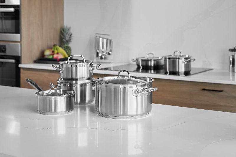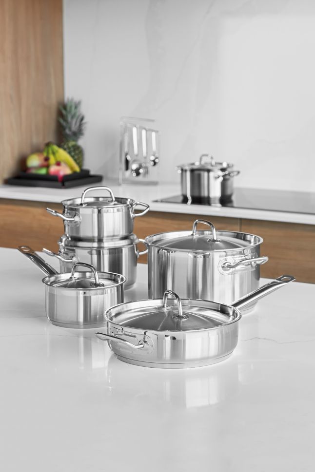 Изработен от висококачествена неръждаема стомана 18/10, този комплект от 12 части осигурява както отлични резултати при готвене, така и елегантен щрих в кухнята. Можете да готвите на всякакъв вид котлон, включително индукция, и да наблюдавате храната си п