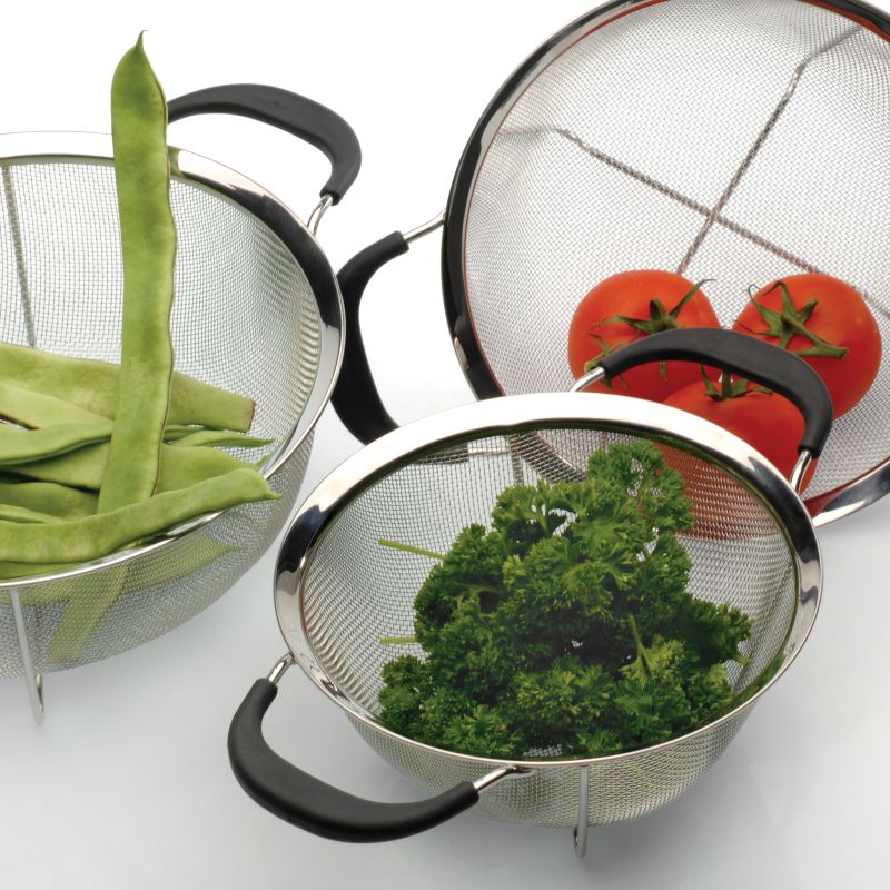 Този гевгир е перфектният кухненски аксесоар за отцеждане на сварени тестени изделия или зеленчуци, изплакване на салата или плодове! Корпусът от неръждаема стомана се поддържа от здрави напречно заварени крака и разполага с две удобни дръжки, които остав