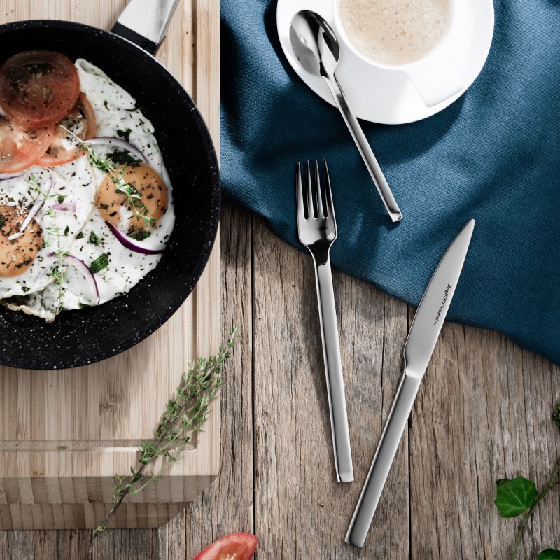 Приборите Essence излъчват мъжественост, която се откроява на масата за вечеря. С този комплект дизайнерът Ралф Креймър създава прецизни и хармонични прибори за хранене, които добре балансират правоъгълни повърхности с ясни извивки. Той съчетава техника