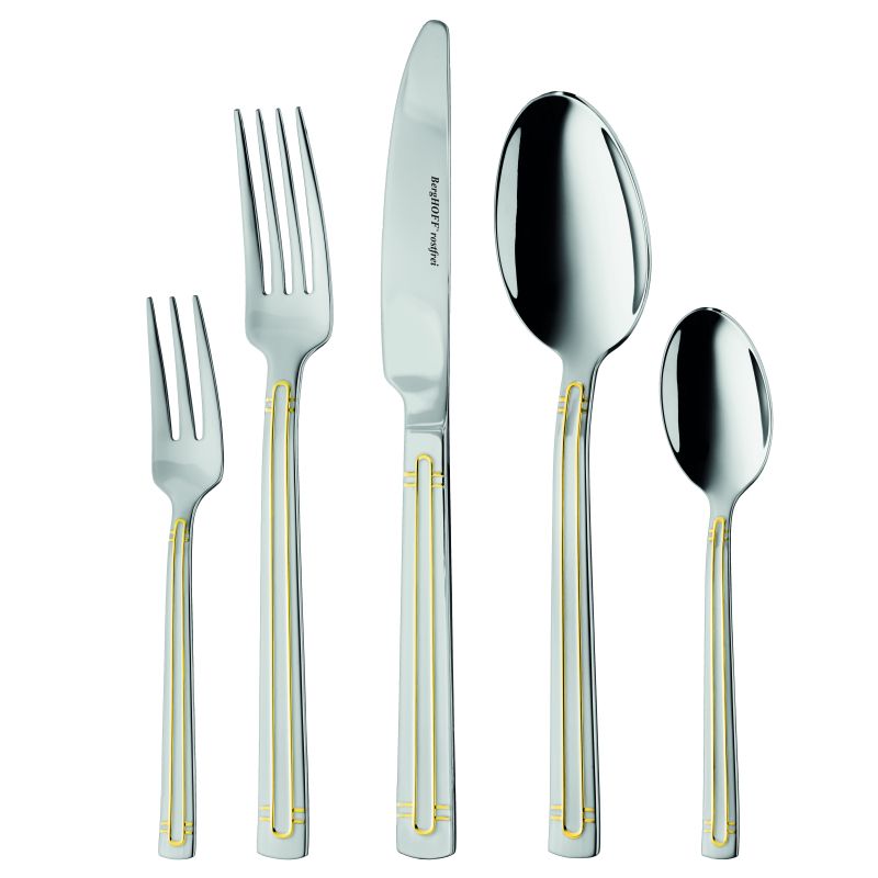 Заблестете като звезда, когато поставите приборите Heritage на масата си за вечеря! Този комплект има невероятни детайли,а златистите линии на дръжката, придават изискан вид и усещане на приборите за хранене. Комбинирайки изящен контур с лек и удобен захв