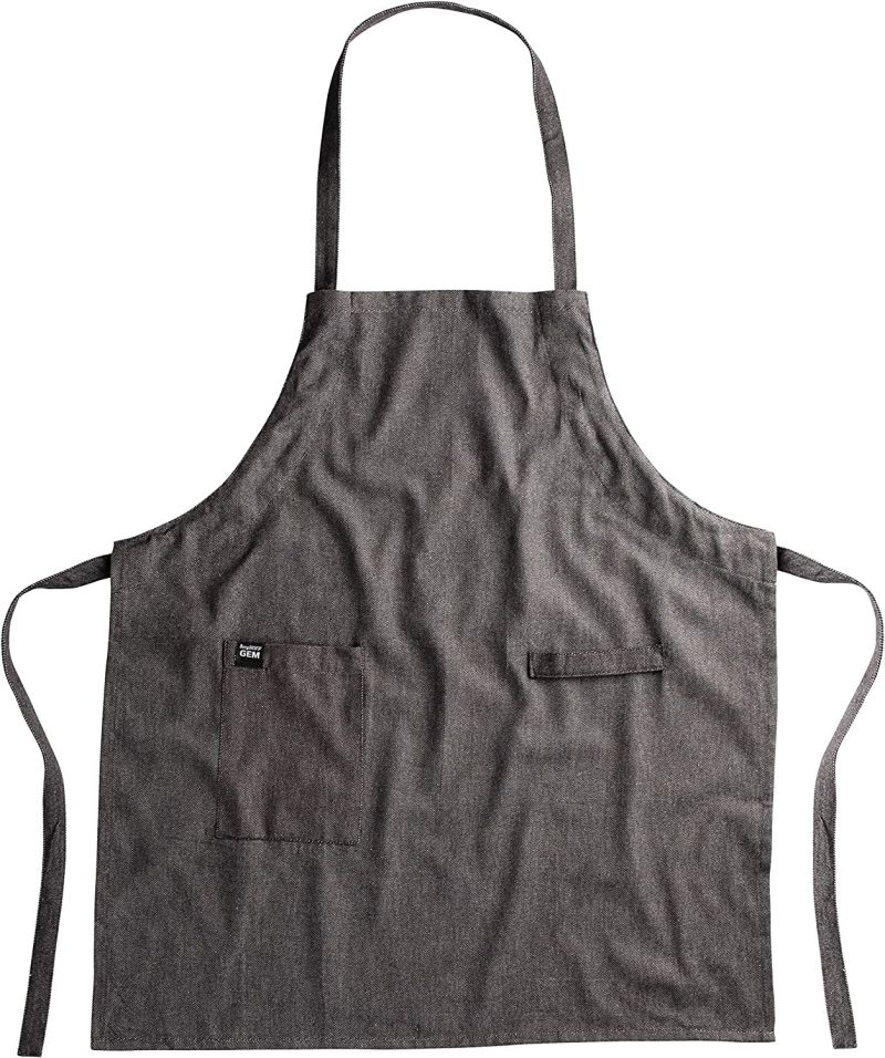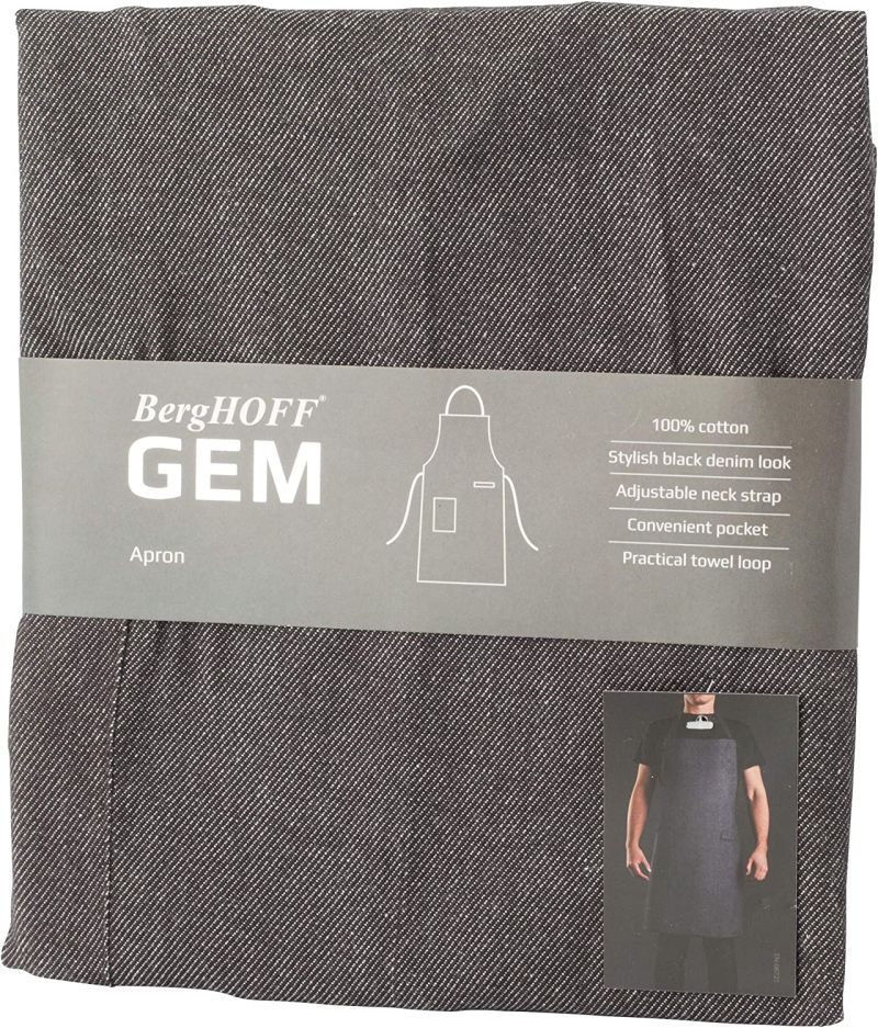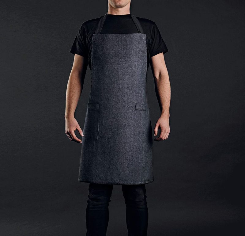 Много популярна както сред професионалните готвачи, така и сред хоби готвачите, тази стилна престилка с външен вид на черни дънки не само помага да предпазите дрехите си от петна, но и внася стил във вашата кухня. Тя има регулируема презрамка за врата, преден джоб и халка за кърпа. Изработена е от 100% памук, така че можете лесно да я перете в пералня.