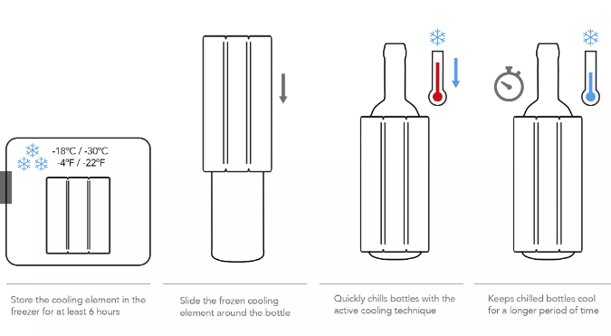 активен охладител за вино, Vacu Vin Wine Cooler, охладител за бутилки, охлаждане на напитки, изолиран ръкав за вино, преносим охладител за вино.