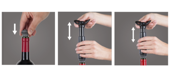 Вакуумни тапи за вино от Vacu Vin – Запазете свежестта на вашето вино до 10 дни. От 1986 г. Wine Stoppers от Vacu Vin са задължителен аксесоар за домакинствата. С тези тапи можете да предотвратите окисляването на виното, като запазите вкуса му свеж до 10 дни. Как работят: Поставете универсалната вакуумна тапa в бутилката с вино. Използвайте Original Wine Saver, за да изпомпате въздуха, докато чуете характерното „щракване“. Това сигнализира, че вакуумът е постигнат и бутилката е херметично затворена.
