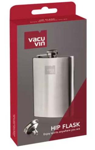 Vacu Vin Hip Flask – Вземете любимите си напитки навсякъде с вас.Vacu Vin Hip Flask ви позволява да носите любимите си напитки, където и да отидете. С вместимост от 24 cl (8 fl.oz), тази компактна и елегантна манерка е идеалният аксесоар за пътувания, пикници или всякакви събития. Включва удобна фуния за лесно пълнене без разливане.