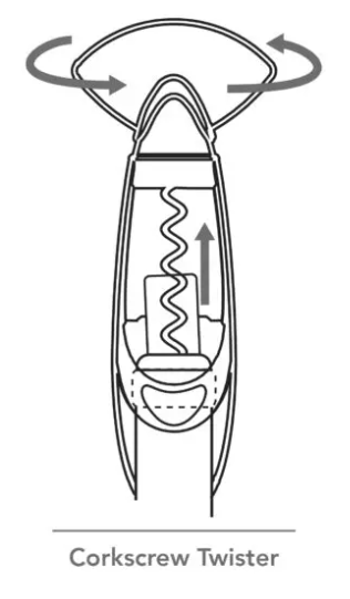 Тирбушонът Twister осигурява лесно и гладко изваждане на всички видове тапи с минимални усилия.