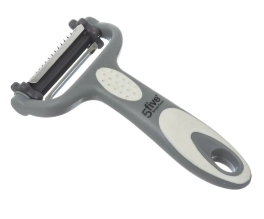 5Five комбинирана белачка съчетава няколко остриета в един уред за универсално белене и рязане. Идеална за плодове, зеленчуци и декоративна обработка.