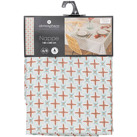 Стилна и практична трапезна покривка „Jaky“ от Atmosphera – полиестер с антипетно покритие, в модерен теракота-розов оттенък, размер 140 × 240 cm — идеалната защита на масата с фин дизайн.