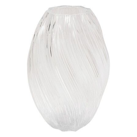 Ваза „Valma“ от Atmosphera в стъклен дизайн с органични обръчи и вертикални ребра — избира се в прозрачна (Ø 17 × H 27 cm) или бяла версия (17 × 17 × 21 cm). Този деликатен декоративен акцент придава поетичен и стилен щрих в интериора, идеален за малки букети или аранжировки.