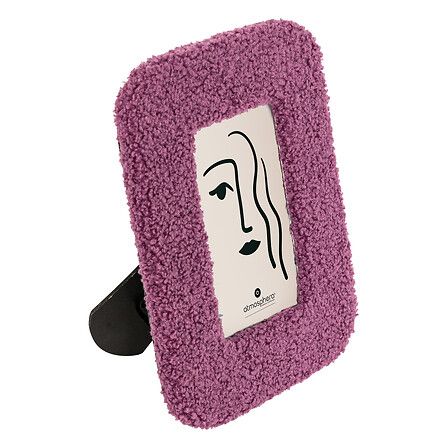 Фоторамка „Neela Bouclette“ от Atmosphera (лилава, 10×15 cm) с декорация от „bouclette“ текстил и рамка от MDF елегантно представя снимките ви. С компактни размери и лек дизайн (около 0,3 kg), тази рамка внася уют и стил във всеки интериор — на маса или окачена на стената.