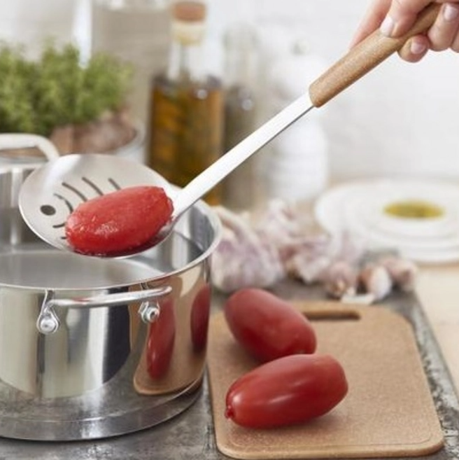 Лъжицата е лека, удобна и щадяща към съдове с незалепващо покритие, тъй като не надрасква повърхностите. Отворите ѝ са проектирани така, че да осигуряват отлично отцеждане, а ергономичната дръжка гарантира стабилен и комфортен захват при работа.