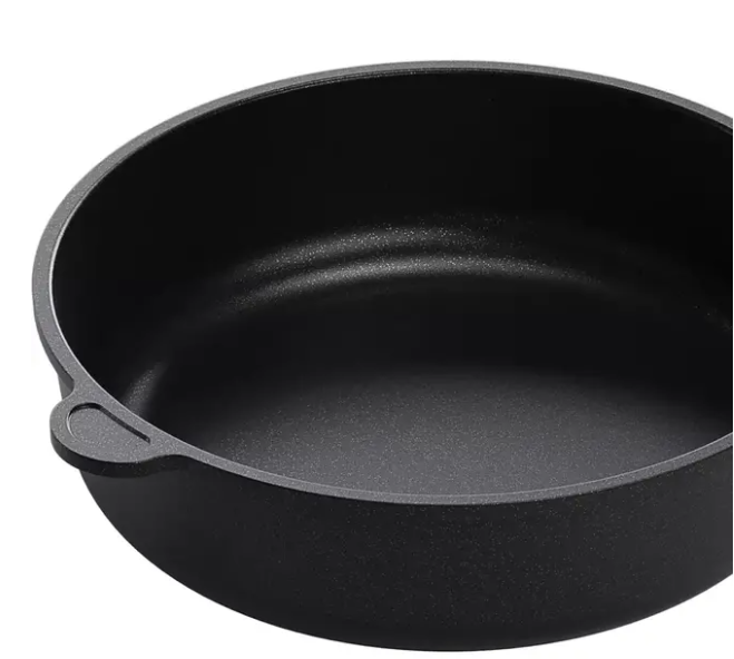 Съдът е изработен от висококачествен алуминий с подсилено незалепващо покритие, което осигурява готвене с минимално количество мазнина и лесно почистване. Дъното е проектирано за всички видове котлони, включително индукционни, като гарантира стабилно разпределение на топлината и отлични резултати при всяко използване.