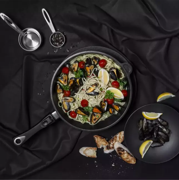 Гответе като професионалист с AMT – висококачествен сотиращ съд 28 см, идеален за задушаване, сотиране и приготвяне на разнообразни ястия на всички видове котлони, включително индукция.