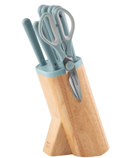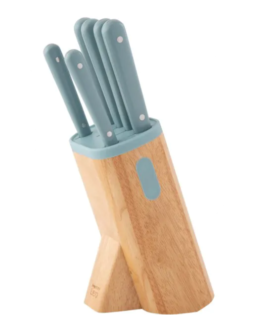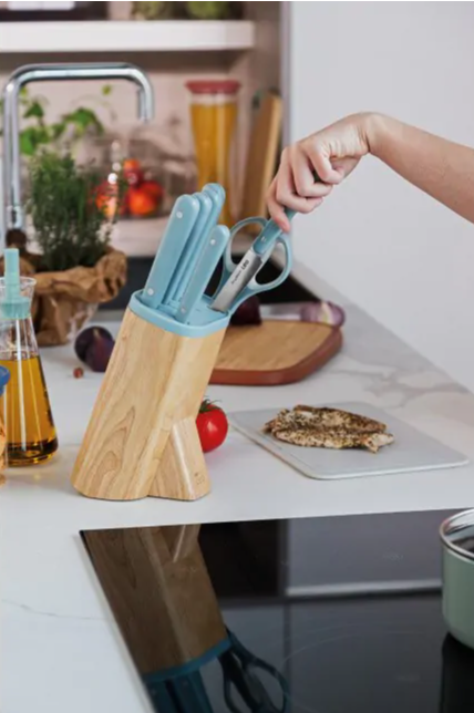 Комплект от 7 кухненски ножа „Glints Slate“ с дървен блок и магнитна секция — идеален за ежедневна готварска работа и стилна организация на кухненския плот.