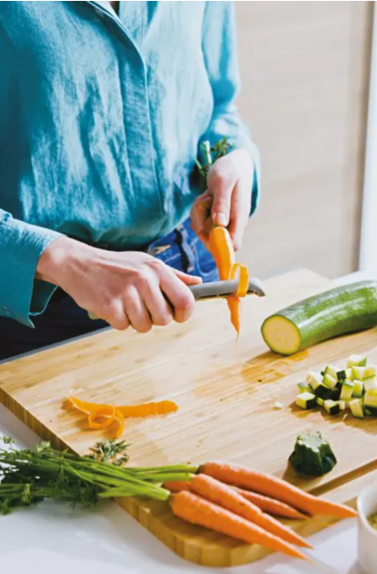 Straight Peeler Balance — елегантен и устойчив белач за плодове и зеленчуци със заострено ножче от неръждаема стомана и ергономична дръжка с меко‑докосване.