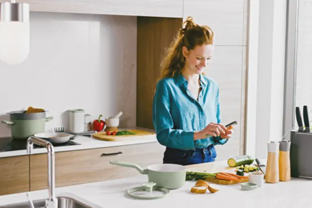 Белачът Straight Peeler Balance е функционален аксесоар за кухнята, който позволява лесно и бързо отстраняване на кората от картофи, моркови, ябълки и други плодове и зеленчуци. Острието е изработено от висококачествена неръждаема стомана, която се плъзга гладко по повърхността без усилие. Ергономичната дръжка със софт‑тъч текстура е изработена от рециклирани материали (PP & TPE) и е проектирана за сигурен и комфортен захват, дори при влажни ръце. Белачът принадлежи към серията Balance на BergHOFF, която залага на модерна визия, устойчиви материали и ежедневна практичност. Уредът е безопасен за хранителен контакт и е подходящ за почистване в съдомиялна машина. Перфектен избор за домакинства, студенти или кухня за гости, който съчетава стил, екологичен подход и ефективност.